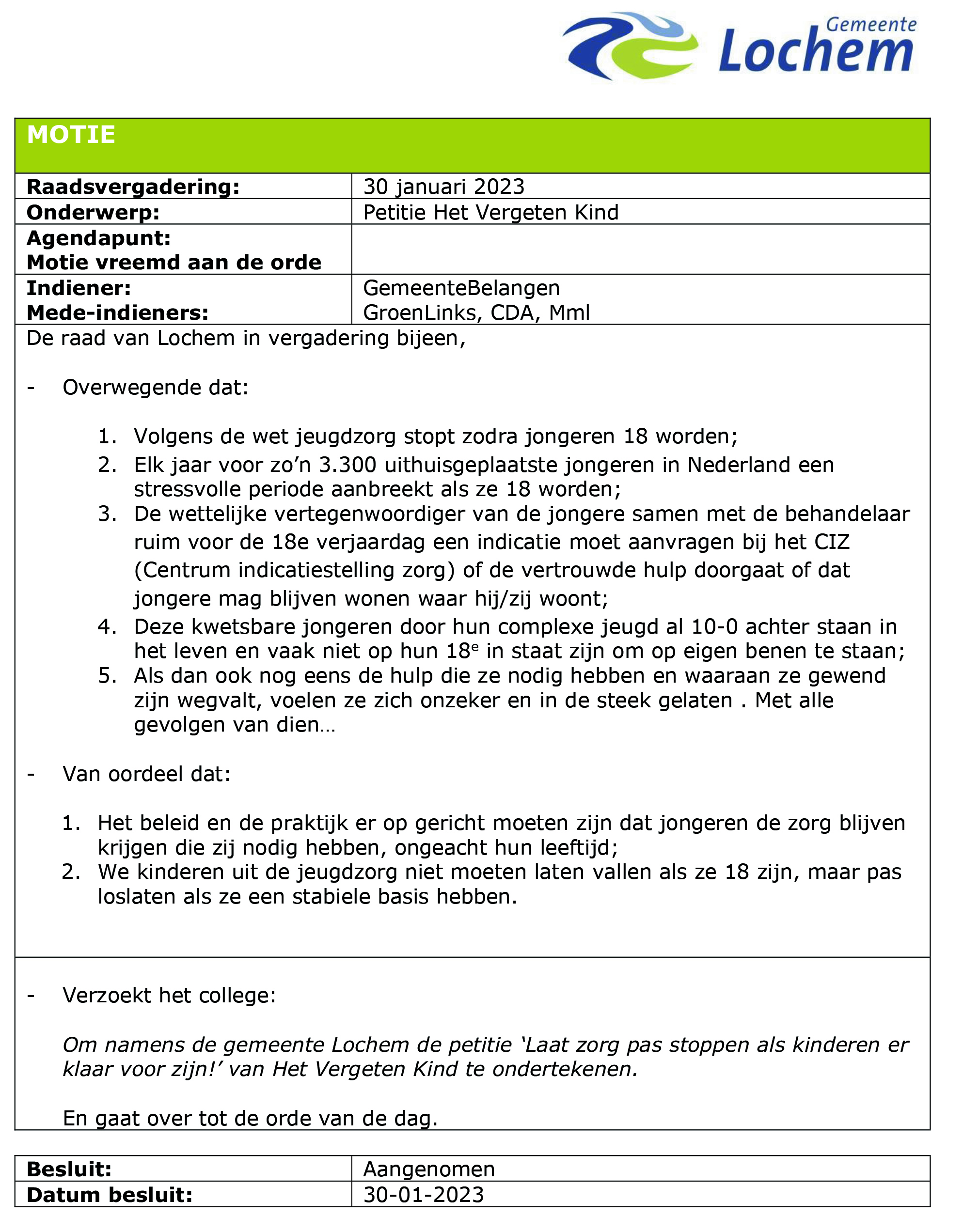 Met deze motie verzoeken we het college om namens de gemeente Lochem de